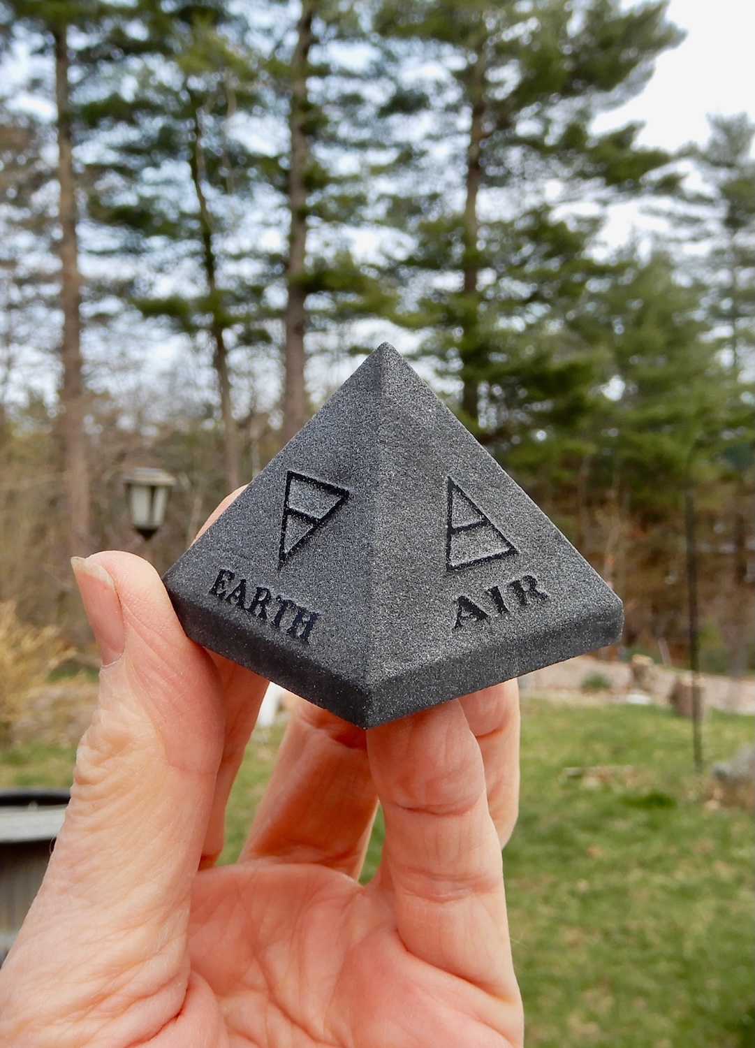 This amazing Black Tourmaline Pyramid with Elements has the four elements of nature, earth, water, fire, air, plus spirit embossed onto each side of this pyramid.