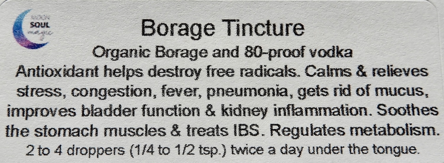 Organic Borage Tincture is an extraction of home-grown organic borage in 80-proof vodka over 6 weeks.